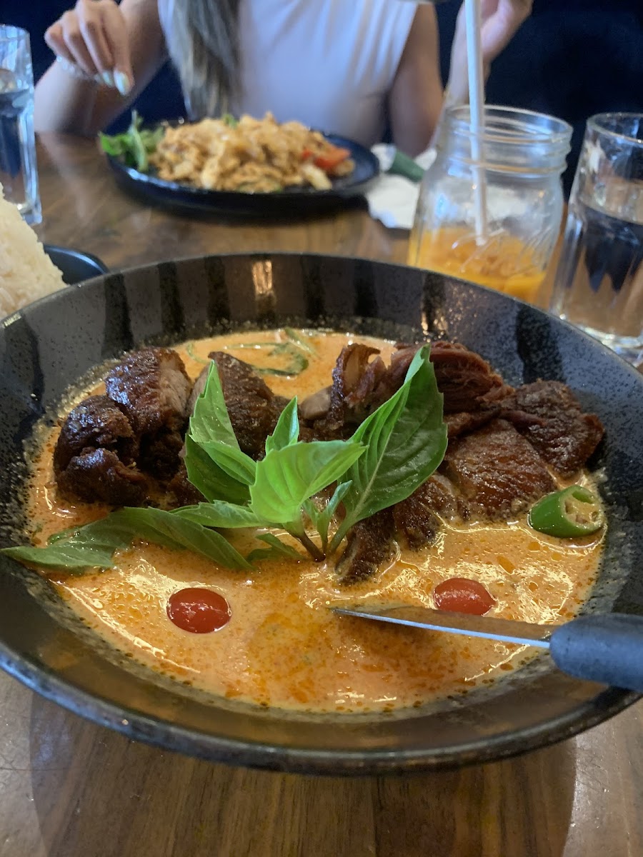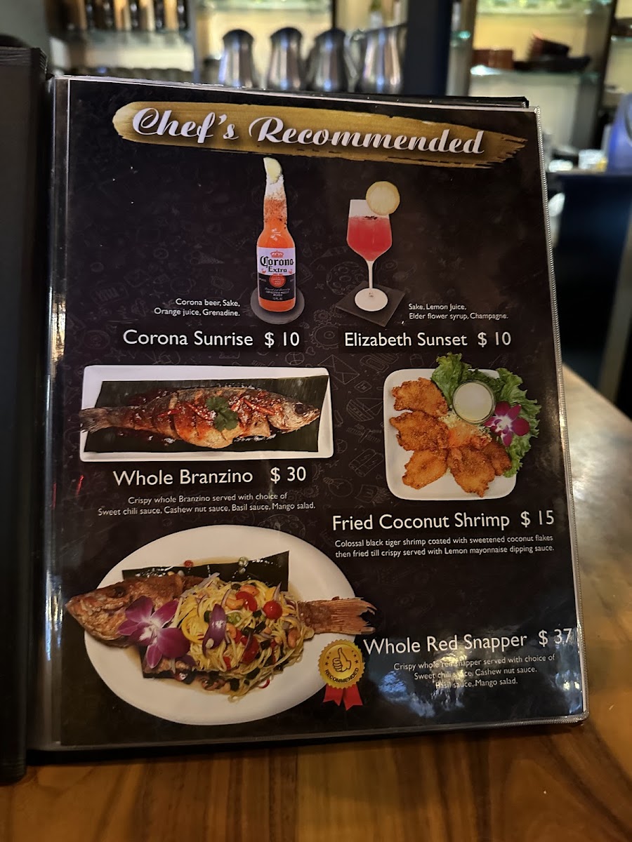 As you step inside, the beautifully designed interiors create a warm, inviting atmosphere, perfect for enjoying a meal with family or friends. The modern decor paired with Thai-inspired accents sets the stage for a delightful dining experience.